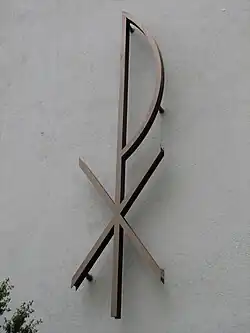 - Eine Besonderheit des Kirchgebäudes ist, dass weder auf dem Dach noch an der Fassade das Christus-Kreuz zu sehen ist, sondern das weniger bekannte Christusmonogramm.