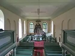 Die Orgel auf der Westempore wurde 1850 von der Firma F. W. Kaltschmidt aus Stettin gefertigt und im Jahr 2006 restauriert. Das Bauwerk ist in seinem Innern flach gedeckt und trägt am Übergang eine Voute. Einzelne Stücke der ursprünglich bemalten Balkendecke wurden von den Handwerkern im Turm wiederverwendet.