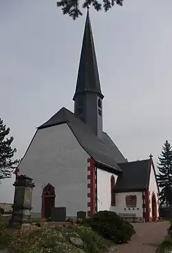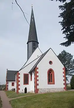 Die spätromanische Saalkirche wurde auf einer Anhöhe zu Beginn des 13. Jahrhunderts neu erbaut. Im Jahr 1519 wurden die Eingangshalle und ein Dachreiter hinzugefügt und eine Renovierung der Kirche vorgenommen; eine Restaurierung erfolgte 1875, wobei die Emporen, die Kanzel und die Loge eine einheitliche Farbfassung erhielten; weitere Arbeiten in den Jahren 1895 und 1990.