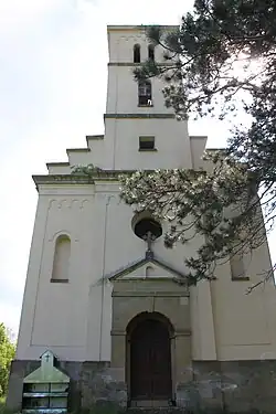 Im großen Kirchhof der einen Heckenzaun besitzt und von viel Natur umgeben wird, stehen neben der Kirche, mehrere alte Grabdenkmäler und westlich vor der Kirche wächst ein mehrere Jahrhunderte alter Kiefernbaum.