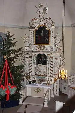 Der Innenraum ist barock gestaltet. Sein Muldengewölbe hat eine Deckenmalerei über Christi Himmelfahrt, entstanden 1731. Die U-förmigen, sich zum Chor trapezartig weitenden Emporen wurden auf hölzernen Säulen eingebaut. Ihre Brüstungen sind mit Szenen aus dem Leben von Jesus Christus bemalt. Den aufwendig gestalteten zweigeschossigen Kanzelaltar mit vollplastischen biblischen und allegorischen Figuren schuf Ernst Dietrich Bartels. Unter der Kanzel ist krippenspielartig ein Abendmahl Jesu arrangiert. Der Kanzelkorb wird von gedrehten korinthischen Säulen flankiert. Im Hintergrund der Kanzelöffnung ist ein Bild des zwölfjährigen Jesus im Tempel, im Altarauszug eine Tafel mit der Kreuzigung, als Bekrönung eine Skulptur des von Engeln umgebenen Auferstandenen. An den Stirnseiten der Chorschranken steht je ein Putto.