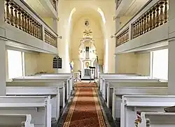 Die erste Kirche am Ort wurde im Dreißigjährigen Krieg zerstört. 1650 wurde sie wieder aufgebaut. Die heutige Kirche entstand nach dem Abriss des Vorgängerbaus im Jahr 1796.