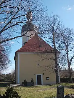 Die im Kern romanische Chorturmkirche wird entsprechend der Form des Kleeblattfensters im Westen in die erste Hälfte des 13. Jahrhunderts datiert. Um das Jahr 1700 erfolgte eine grundlegende Umgestaltung, weitere Erneuerungen folgten in den Jahren 1840 und 1881, eine Restaurierung im Jahr 1968. Nach der deutschen Wiedervereinigung und der neuen Rolle der christlichen Kirchen im Osten Deutschlands konnte eine große Sanierung stattfinden.[2]