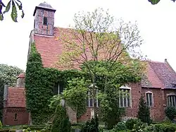 Die ziegelgedeckte Kirche zählt in ihrem Urzustand zu den Bauten der Backsteingotik. Sie besteht aus Chor, Kirchenschiff, Sakristei und einem westlichen Vorbau. Auf dem Schiff sitzt ein kleiner Turm mit Uhrwerk und Zifferblatt.