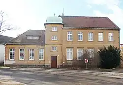Das unmittelbar neben der Kirche gelegene ehemalige Pfarrhaus wurde in der heutigen Form nach mehreren Vorgängern 1888 errichtet. Es ist ein zweigeschossiges Gebäude mit fünf Fensterachsen, einem Satteldach und einem markanten Treppenturm mit einer kupfergedeckten Haube. Zu seiner späteren Nutzung als Schönauer Schule wurde 1934 ein einstöckiger Anbau mit zwei Klassenzimmern angefügt. Heute dient es Wohnzwecken.[6] Es ist eines der letzten erhaltenen Gebäude des Dorfes Schönau und steht unter Denkmalschutz.[7]