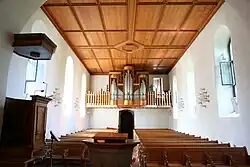 1924 erhielt die Kirche Schwamendingen ihre erste Orgel. Es handelte sich um eine pneumatische Taschenladenorgel, welche durch Carl Theodor Kuhn, Männedorf, errichtet wurde. Das Instrument besass 14 klingende Register, sechs Transmissionen, vier Verlängerungen und ein Auszug auf zwei Manualen und Pedal. Bei der Gesamterneuerung der Kirche im Jahr 1976 ersetzte eine neue, mechanische Orgel das erste Instrument. Erbaut wurde die neue Orgel durch Peter Ebell, Kappel am Albis. Er stattete die Orgel mit 16 Registern auf zwei Manualen samt Pedal aus.[3][4]