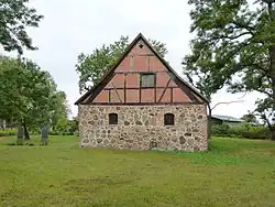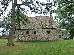Die Kirche ist im 17. Jahrhundert, wahrscheinlich anstelle eines früheren Gebäudes, aus Feldstein gemischt mit Backstein und einem östlichen Fachwerkgiebel auf annähernd quadratischem Grundriss errichtet worden. Der westliche Giebel wurde um 1900 erneuert. Die Kirche hat in den Langseiten je drei, in der Ostwand zwei relativ kleine segmentbogige Fenster.