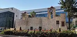 Den ersten, symbolischen Spatenstich vollzog am 9. September 1999 das Haupt des Kirchenvorstands Jean Maǧdalani (جان مجدلاني), für den sich ein Lebenstraum erfüllte und der bald darauf starb,[1] in Gegenwart eines seiner Nachfolger Jussif Churi (يُوسِف خُورِيّ, DMG Yūsif Ḫūrī), vieler Parochianen wie Maha Ballans sowie Amram Mitznas und weiterer Gäste.[2] Im folgenden Jahr lobte der Kirchenvorstand einen anonymen Architekturwettbewerb aus, ein neues, alle modernen parochialen Bedürfnisse gerecht werdendes Kirchengebäude mit Gemeinschaftsräumlichkeiten zu entwerfen.[2] Maha Ballan gewann ihn, arbeitete ab Anfang 2000 die Baupläne aus und besorgte dann die Baugenehmigung.[2]