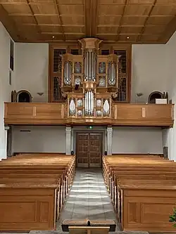 Die Orgel auf der Westempore wurde 1988 von Orgelbau Felsberg erbaut, nach Vorbildern von Schnitger-Orgeln des 17. Jahrhunderts. Das Schleifladen-Instrument hat 31 Register auf drei Manualen und Pedal. Die Temperierung ist ungleichstufig (nach Thomas Young).[8][9]