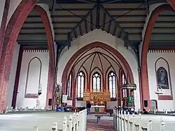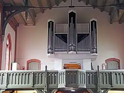 Bis 1975 befand sich eine Orgel mit neogotischem Prospekt in der Kirche. 1975 wurde eine neue Orgel mit modernem Prospekt von der Firma Mitteldeutscher Orgelbau A. Voigt aus Bad Liebenwerda gebaut. Sie hat 1587 Pfeifen und 22 Register, zwei Manuale und Pedal. 1995 erfolgte eine Generalüberholung, bei der die pneumatische Registersteuerung mit einem an die mechanische Registertraktur angeschlossenen elektronischen Setzer versehen wurde, mit dem 512 Kombinationen der Registratur möglich sind.[11]