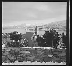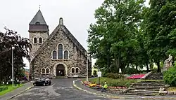 Die Grundsteinlegung erfolgte im Sommer 1906 durch König Haakon VII., die Einweihung folgte im September 1909.[2] Die Kirche wurde im Rundbogenstil mit einer Fassade aus Natursteinen gestaltet. Die verwendeten Steine wurden aus Eide in Nordmøre geliefert. Der Kirchturm befindet sich südwestlich des Kirchenschiffs.