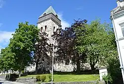 Außerdem ist in der Vorhalle eine Gedenktafel an die Opfer Ålesunds während des Zweiten Weltkriegs angebracht. Östlich vor der Kirche befindet sich das an die Gefallenen des Zweiten Weltkriegs erinnernde Denkmal De falne til minne.