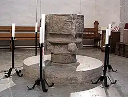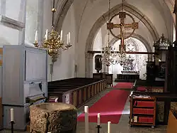 - Der reich skulptierte und mit der Runeninschrift (G 229) versehene Taufstein im Turmraum stammt aus dem 12. Jahrhundert und ist einer der bemerkenswertesten auf Gotland.