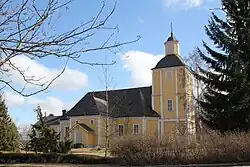 Die Kirche ist eine Langhauskirche mit einem Hauptturm, der auf beiden Seiten flache und schmale Rippen aufweist, sie wurde 1886 errichtet.[3]