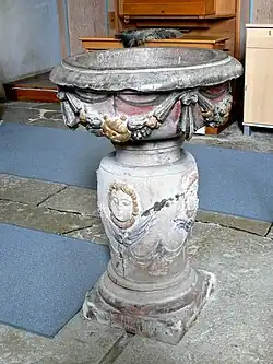 Aus der Kirchhofmauer erhebt sich ein Kastal aus dem 12. Jahrhundert. Ähnliche Türme befinden sich bei den Kirchen von Gammelgarn und Sundre (Rundturm).