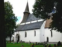 Die mittelalterliche Kalksteinkirche besteht aus einem dreischiffigen Langhaus mit einem schmaleren, gerade abschließenden Chor im Osten und einer Sakristei im Norden. Die Sakristei, der älteste Teil der Kirche, wurde ursprünglich an einen Apsischor aus der zweiten Hälfte des 12. Jahrhunderts angebaut. Die Steine der Apsis finden sich im heutigen Kirchenmauerwerk wieder. In der späteren Bauperiode, wahrscheinlich im 13. Jahrhundert, wurden Chor und Langhaus gebaut. Abweichungen in der Gewölbeform und die Fensterausformungen deuten darauf hin, dass die beiden westlichsten Gewölbe etwas später hinzukamen. Von außen gesehen ist die Kirche eine Basilika mit niedrigen Obergaden (Fensterebene des Mittelschiffs oberhalb der Seitenschiffe). Ein Dachreiter mit einer achteckigen Turmspitze, die eine Glockenebene unter einem Schutzdach enthält, krönt den Westgiebel. Der Chor ist durch ein niedrigeres Satteldach gedeckt und die Sakristei hat ein Pultdach.