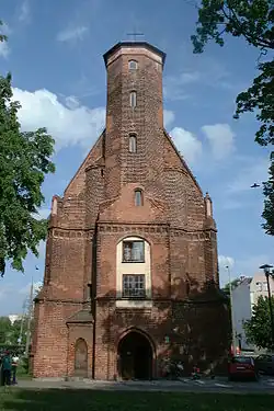 Nach Erlass des königlichen Privilegs von 1557, das den Evangelischen Religionsfreiheit sicherte, wurde hier eine evangelische Pfarrei gegründet. Im Jahr 1572 wurde erwogen, die Kirche wegen der Nähe zur Stadtmauer abzureißen, jedoch kam der Rat wieder von diesem Plan ab. 1601 erwog der damalige Bürgermeister Johann Sprengel erneut eine Bereinigung des Terrains. Nach einer Sage erschien dem Bürgermeister ein in Weiß gekleideter Mann, der Sprengel die Verdammnis androhte, sollte die Kirche abgerissen werden.