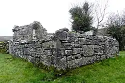 Während der romanische Chorraumbogen aus dem 12. Jahrhundert stammt, gehen die Meinungen über die Datierung des Chorraumes auseinander. Im Chor wurden die Fragmente einer Grabplatte mit frühirischer Inschrift gefunden. Ein Taufbecken in der Südwestecke zeigt zwei Tierfiguren mit verschlungenen Hälsen. Sie sind eine Darstellungsform des 15. Jahrhunderts. Keinen Zweifel gibt es bei dem einfachen, aber massiven geraden Türsturz am westlichen Ende des Kirchenschiffs mit dem außergewöhnlich großen Mauerwerk. Das Schiff bildete den ältesten Teil des Gebäudes und datiert um das Jahr 1000. Zwei romanische Fenster in der Südmauer erhellten es. Der Historiker John O’Donovan (1806–1861) bezeichnete 1839 die über 20 m lange Kirchenruine als eines der schönsten Exemplare unter den urtümlichen Kirchen Irlands.