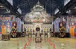 Zur Kirchenausstattung gehören die Einrichtungsstücke einer Kirche und die beweglichen und unbeweglichen Gegenstände, die der Liturgie und den kirchlichen Riten dienen.[1] Einige Prinzipalien wie Altar, Kanzel, Taufbecken und Kreuz finden sich in den meisten Kirchen, oft auch eine Orgel. Auch Paramente und Verbrauchsgüter wie Kerzen, Lampenöl, Weihrauch, Hostien oder Messwein können als Kirchenausstattung bezeichnet werden. Besonders im süddeutsch-österreichischen Raum sind manche römisch-katholische Kirchen mit Vermögenswerten: Stiftungen, Grundbesitz, oder Ablässen ausgestattet.