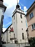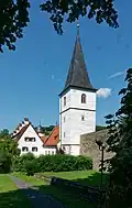 Die heutige Laurentiuskirche war ursprünglich eine dreischiffige Basilika mit Chorturm, die wohl 1210 bis 1230 erbaut wurde. Im 14. und 15. Jahrhundert wurde sie gotisiert und danach mehrfach verändert. 1955 wurde die Kirche renoviert. Der Turm wurde im 18. Jahrhundert erhöht.
