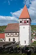 Die heutige Johanneskirche hat noch frühgotische Teile im Chor und im Turmunterteil. 1612 bis 1617 wurde das in drei Teile gegliederte Schiff erweitert. Vier Jahre später der Turm erhöht. Der Portalvorbau stammt aus dem Jahr 1913. Die Friedhofskirche wurde 1575 erbaut und 2008 innen renoviert. Eine Wolfgangskapelle wurde 1806 profaniert.