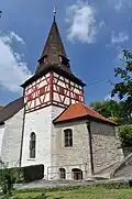 Die gotische Kapelle St. Veith in Sichertshausen hat einen Chorturm aus dem 13. Jahrhundert mit einem Fachwerkobergeschoss.