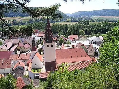 ![]() Blick auf die Kirchenburg von Kinding | ||