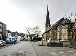 Die katholische Pfarrkirche St. Mariä Geburt wurde 1928/1929 von dem Architekten Emil Fahrenkamp erbaut. Der Bau der Kirche wurde maßgeblich von der Familie Thyssen finanziert.[2] Das Wandbild über dem Altar, das das Himmlische Jerusalem darstellt, stammt von Ernst Rasche.[3] Eine von Dominikus Böhm entworfene Taufkapelle wurde 1943 zerstört.[4]