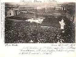 1846 wurde Pius IX. Papst (und blieb es bis 1878). Er agierte anfänglich liberal (1846–1848) und wurde so zu einem Idol der Neoguelfen (des katholischen Flügels der italienischen Liberalen und Nationalisten des Risorgimento). Schon bald jedoch erfüllte er deren hochgespannte Erwartungen nicht mehr. Daraufhin kam es im Zuge der Revolutionen von 1848/49 in weiten Teilen Mitteleuropas auch in Rom zur Revolution. Der Papst musste fliehen. Am 9. Februar 1849 wurde im Kirchenstaat die Republik ausgerufen (vgl. Römische Republik 1849).