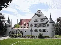 - Das Deutschordensschloss (erbaut 1572 bis 1576) ist ein ehemaliges Wasserschloss des Deutschen Ordens.
