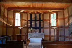Der Baustil der Kirche entspricht nordfranzösischen Fachwerkbauten und wird deshalb in die Region eingewanderten Hugenotten zugeschrieben. Die Ständer des Fachwerks stehen verhältnismäßig dicht. Sie tragen ein ausladendes Traufgesims. Die Kirche besitzt ein Satteldach, wobei die Konstruktion auf eine ursprüngliche Eindeckung mit Reet schließen lässt. Diese wurde nach der Sanierung des Gebäudes erneuert. Nach Osten verfügt die Kirche über einen dreiseitigen Abschluss. Auf der Westseite befindet sich ein verbretterter Turmaufsatz. An der Nordseite ist eine kleine Vorhalle angefügt.