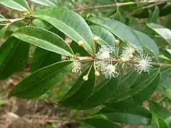Die gegenständig angeordneten Laubblätter sind in Blattstiel und Blattspreite gegliedert. Die einfachen, kahlen Blattspreiten sind ganzrandig und fiedernervig[1] und drüsig punktiert und aromatisch duftend. Nebenblätter sind nicht vorhanden.[2]