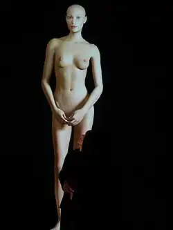 Maya Brush[5] ist eine virtuelle photorealistische Skulptur, die von der Künstlerin Kirsten Geisler von 2008 bis 2011 geschaffen wurde. Sie besteht aus bits und bytes. Maya Brush ist die erste virtuelle Schönheit – ein künstlicher Körper – der sich am menschlichen Schönheitsideal orientiert, ohne jedoch nach einem leiblichen Vorbild kreiert worden zu sein. Als Modell ist sie der Wirklichkeit gewordene Wunschtraum erwünschter medialer Schönheitsvorstellungen. Maya Brush repräsentiert alle globalen Prefab-Girls, die standardisierten und technisch gestalteten Schönheiten, wie sie durch Reklame und Medien propagiert werden. Als Kunstfigur bewegt sich Maya in den verschiedenen On- und Offline-Welten. Erstmals wird eine virtuelle Skulptur das Museum und die Kunstinstitutionen verlassen und den Schritt ins Leben wagen. Die mediale Öffentlichkeit und die globalen Kommunikationsnetzwerke werden ebenso ihr Zuhause sein, wie die Museen, in die sie immer wieder mit ihren Erfahrungen zurückkehrt. Seit ihrer Geburt[6] kann die ganze Welt auf Mayas Facebook-Seite[7] miterleben, wie sie den Weg ins reale Leben geht und als erste virtuelle Skulptur die Medien erobert.