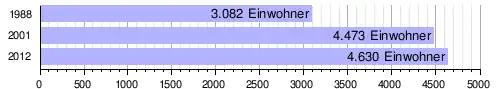 Im Hauptort lebten bei der Volkszählung 2012 4.630 Einwohner in 693 Haushalten,[2] bei der Volkszählung 2001 4.473 in 567 Haushalten[14] und bei der Volkszählung 1988 3.082 in 452 Haushalten.[15]