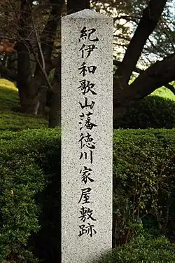 Pfahl, der den Standort der alten Residenz der Kishu-Tokugawa anzeigt.