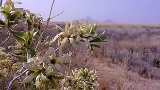 Die zwittrigen Blüten sind radiärsymmetrisch und fünfzählig mit doppelter Blütenhülle. Die fünf haltbaren Kelchblätter sind deutlich länger als die Kronblätter und vergrößern sich bis zur Fruchtreife deutlich und krönen die Frucht. Die fünf Kronblätter sind cremefarben. Die äußeren Staminodien sind verwachsen und bilden ein längliches, gelbliches Schuppenblatt (nectar scale). Der Fruchtknoten ist annähernd unterständig, die Plazenta ist stark reduziert und bildet nur wenige Samenanlagen aus.