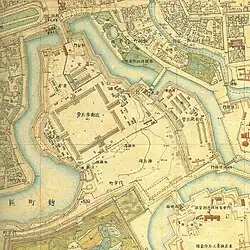 - ↑ Die dritte Familie, Hitotsubashi, erhielt ihren Sitz gleich außerhalb des Kitanomaru.