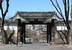 Die Burg Edo war im Norden durch die „Nördliche Vorburg“ Kitanomaru geschützt, zu der man durch ein hochgelegenes Tor und eine Zugbrücke über einen Graben gelangte. Vom Kitanomaru gelangte man dann in die Stadt durch eine große Toranlage, das Tayasu-mon, und einen Damm über den hier tief eingeschnittenen „Inneren Graben“, westlich vom Damm Chidori-ga-fuchi und östlich Ushi-ga-fuchi und Shimizu-bori genannt. Die Ufer der Gräben sind heute für ihre Kirschblüte berühmt. Ein weiteres Tor, das Shimisu-mon, steht an der Ostflanke des Kitanomaru.