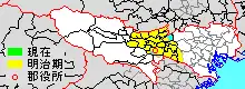 | Gemeinden (1–20) und Gemeindeverbände (A–C) in Nord-Tama sowie dem Rest des Tama-Gebiets (Süd-Tama, West-Tama) in Kanagawa +Hōya in Saitama (21) 1889 in blau bis heute gültige Gemeindegrenzen, sonstige heutige Gemeinden in anderen Flächenfarben ![]() | |