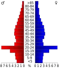 Auf das gesamte County bezogen setzte sich die Bevölkerung zusammen aus 20,60 % Einwohnern unter 18 Jahren, 21,60 % zwischen 18 und 24 Jahren, 24,60 % zwischen 25 und 44 Jahren, 21,60 % zwischen 45 und 64 Jahren und 11,60 % waren 65 Jahre alt oder darüber. Das Durchschnittsalter betrug 31 Jahre. Auf 100 weibliche Personen kamen 98,70 männliche Personen, auf 100 Frauen im Alter ab 18 Jahren kamen statistisch 97,20 Männer.
