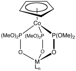 Beispiel eines Kläui-Tripod-Liganden, hier als Komplex mit einem Metall-Ion (M z. B. Al, Ga, In, Tl).