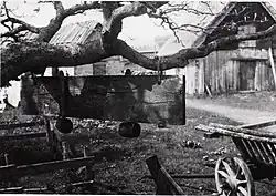 Stationäre Schlagbretter in Dörfern gehörten mutmaßlich in erster Linie zur baltischen Kultur und dürften von anderen nordosteuropäischen Völkern wie den Mordwinen übernommen worden sein.[21] Ein typisches stationäres Schlagbrett war das estnische lokulaud, aus einem etwa 1 bis 1,5 Meter langen und 20 bis 35 Zentimeter breiten Brett, das an zwei Pfosten und einer Querstange im Freien vor dem Bauernhaus aufgehängt war. Das lokulaud wurde wie die baltischen Schlagbretter allgemein mit zwei Holzhämmern angeschlagen.[22] Seit dem ersten schriftlichen Beleg aus dem Jahr 1802 für ein Schlagbrett in Estland bis in die erste Hälfte des 20. Jahrhunderts hing das Schlagbrett zwischen zwei Pfosten. Die ältere Methode war, eine Stange in geeigneter Höhe zwischen die Astgabeln zweier benachbarter Bäume zu legen oder dafür Astgabeln in den Boden zu stecken und das Brett in der Mitte der Stange aufzuhängen. Das lettische stationäre Schlagbrett war nahezu identisch mit dem estnischen, die in Schweden und Finnland früher wesentlich selteneren Schlagbretter gehörten hingegen zu einer anderen Tradition.[23]
