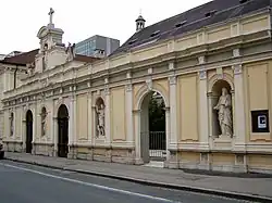Nach der Aufhebung ihres Ordens durch Papst Clemens XIV. im Jahr 1773 mussten die Jesuiten Klagenfurt verlassen. Das Klostergebäude wurde um eine weitere Etage aufgestockt und fortan als Kaserne genutzt. Diese sogenannte „Jesuitenkaserne“ bestand noch bis ins Jahr 1960 und diente im Kärntner Abwehrkampf kurzzeitig als Internierungslager.[10] Die Kirche, die bis dahin lediglich eine Filiale der Pfarre St. Egid gewesen war, wurde im Jahr 1784 zur Pfarrkirche erhoben. Im Jahr 1787 verlegte der damalige Bischof der Diözese Gurk, Franz Xaver von Salm, seine Residenz von Straßburg (bzw. Pöckstein) nach Klagenfurt und erhob die Kirche zunächst provisorisch und im Jahr 1793 endgültig zum Dom der Gurker Bischöfe.