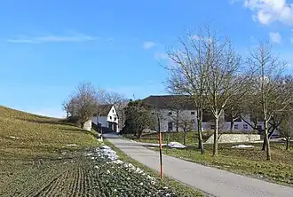 Klamhof von Südwesten. Weiter links am Hügel fand man das Gräberfeld -