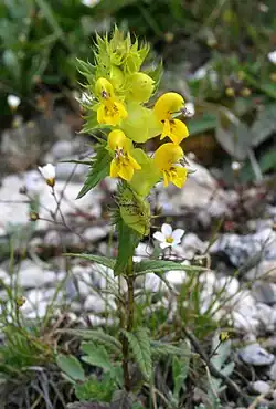 - Grannen-Klappertopf (Rhinanthus glacialis Personnat): Er kommt vom südöstlichen Frankreich bis zur Balkanhalbinsel vor.[3][5]