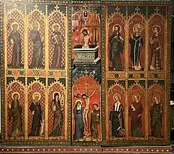 - ↑ Norbert Wolf: Deutsche Schnitzretabel des 14. Jahrhunderts. Deutscher Verlag für Kunstwissenschaft, Berlin 2002, ISBN 978-3-87157-194-7.