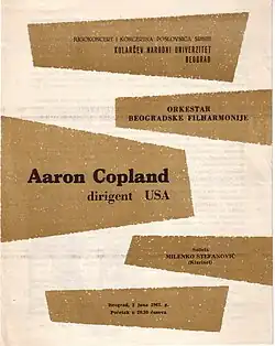 - Milenko Stefanović und das Belgrader Philharmonieorchester mit Aaron Copland (Belgrad, 2. Juni 1961)[10][11][12][13]