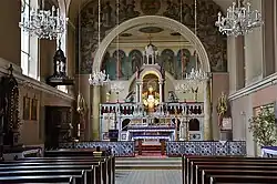 Die Wandmalereien sind vom Maler Josef Kastner der Jüngere aus 1912. Die Kreuzwegbilder malte von 1945 bis 1947 Josef Kugler. Die Orgel wurde 1957 von Josef Huber errichtet und verfügt über 12 Register auf zwei Manualen und Pedal.[1]