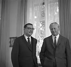 Klaus Schütz (* 17. September 1926 in Heidelberg; † 29. November 2012 in Berlin) war ein deutscher Politiker (SPD). Vom 19. Oktober 1967 bis zum 2. Mai 1977 war er Regierender Bürgermeister von Berlin.