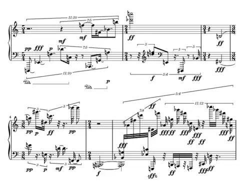 - ↑ Truelove: The Translation of Rhythm into Pitch in Stockhausen’s Klavierstück XI. S. 202–204.